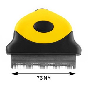 Інструмент оснащений ергономічною пластиковою ручкою з антиковзким покриттям, що забезпечує надійне захоплення та зменшує втому руки під час тривалого вичісування. Робоча поверхня виконана з якісної нержавіючої сталі, яка не піддається корозії та зберігає свою гостроту протягом тривалого часу. Тример є універсальним і підходить як для короткошерстих, так і для довгошерстих тварин, за винятком порід, що не мають підшерстя.