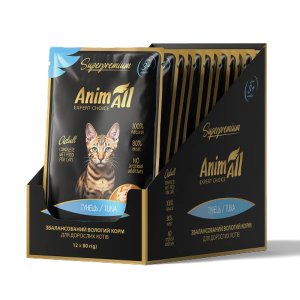 AnimAll Тунець — це вишуканий рибний делікатес у паучі для котів та кошенят старше 3 місяців. Завдяки високому вмісту натурального тунця (80%), корм забезпечує організм пухнастого улюбленця чистим протеїном, омега-3 жирними кислотами та незамінним таурином для підтримки здоров'я серця та гостроти зору.