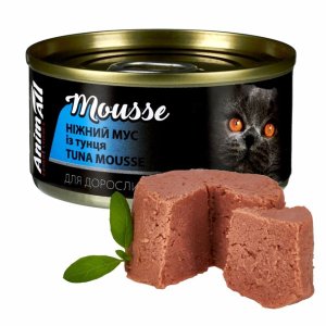 Вологий корм AnimAll Mousse для дорослих котів з тунцем 80 г