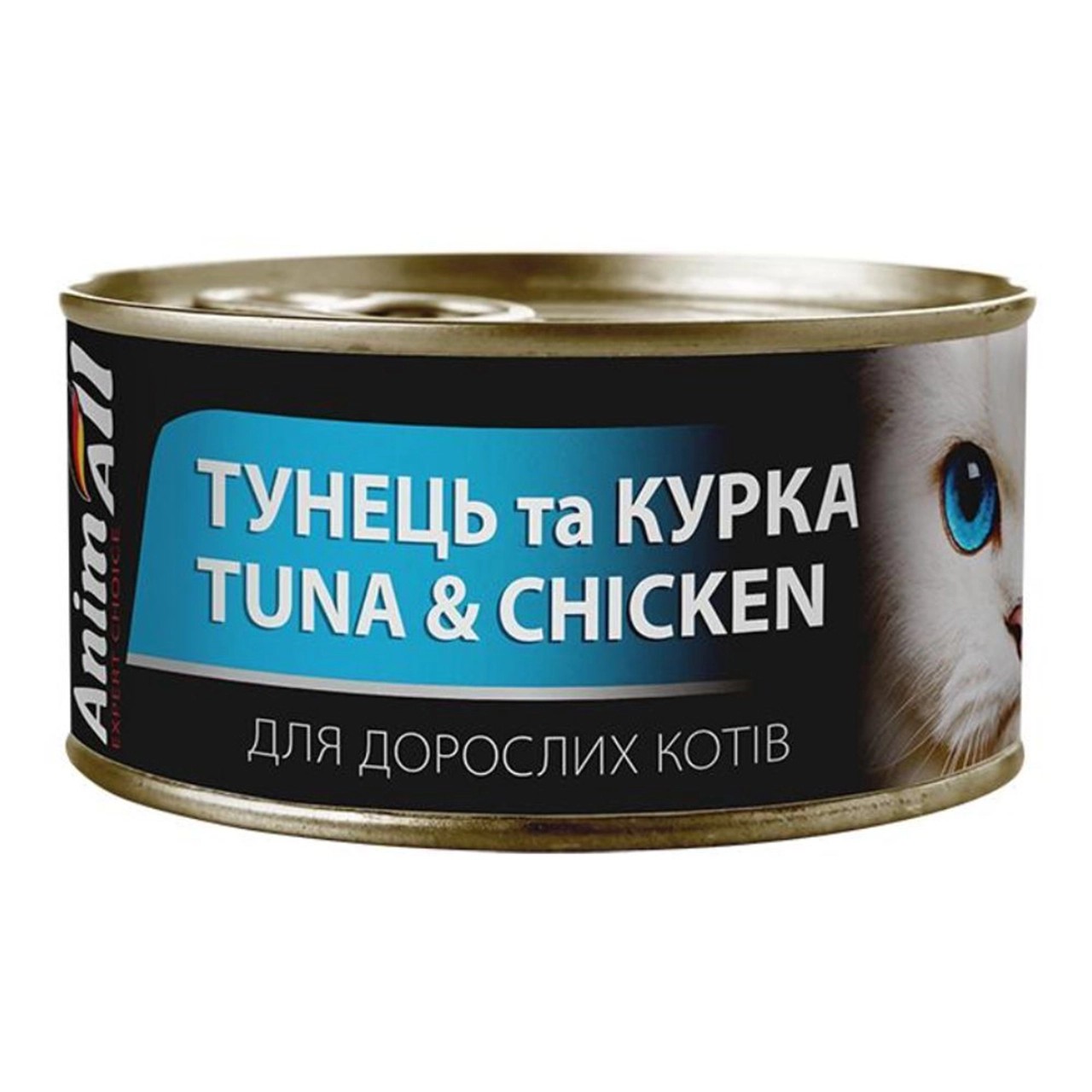 Вологий корм AnimAll для дорослих котів тунець з куркою в ніжному желе 85 г