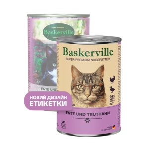 Вологий корм Baskerville для дорослих котів качка та індик 400 г