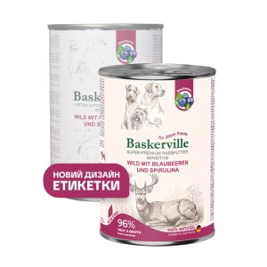 Вологий корм Baskerville для дорослих собак оленина з чорницею та спіруліною 400 г