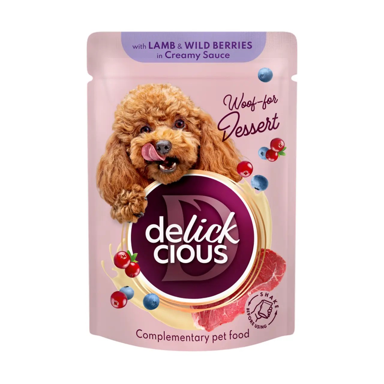 Delickcious Lamb & Wild Berries in Creamy Sauce — це вишуканий додатковий корм преміумкласу для дорослих собак у вигляді ніжних м'ясних пластівців із добірною ягнятиною. Оксамитовий вершковий соус у поєднанні з цільними лісовими ягодами створює багатий смак і делікатну кремову текстуру, що дарує улюбленцю справжнє гастрономічне задоволення.