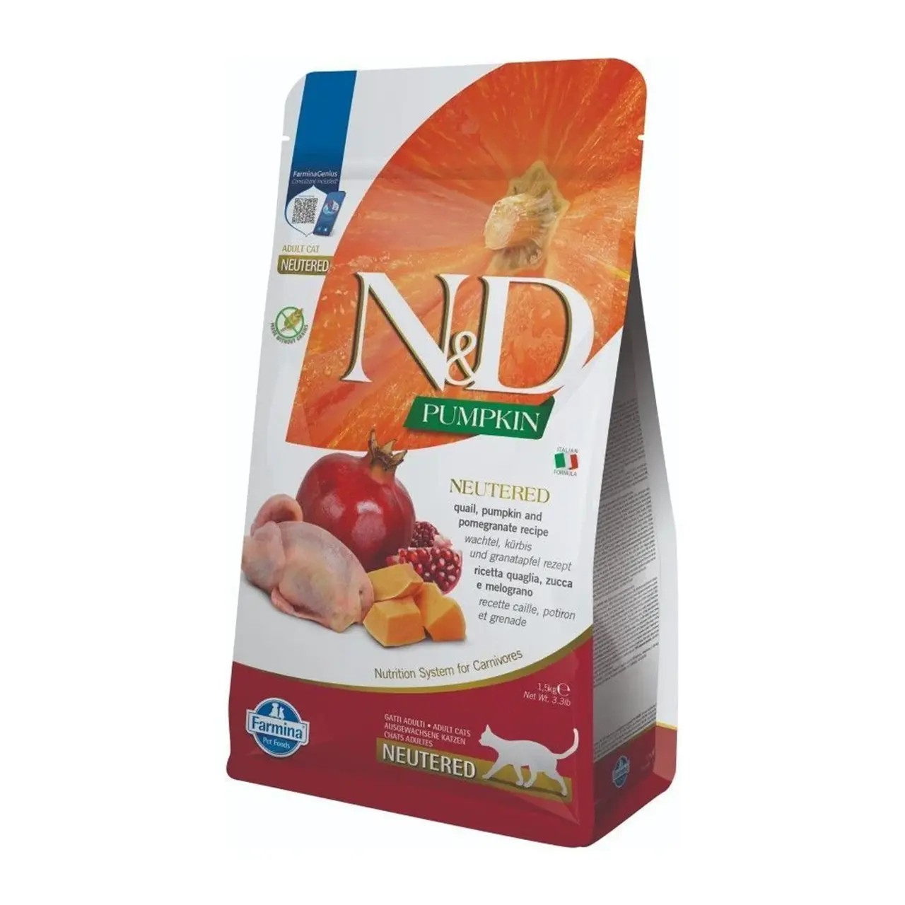 Сухий корм Farmina N&D Grain Free Pumpkin Neutered для дорослих котів перепілка гарбуз та гранат 1.5 кг