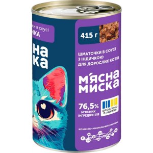 Вологий корм М'ясна миска для котів шматочки в соусі з індичкою 415 г